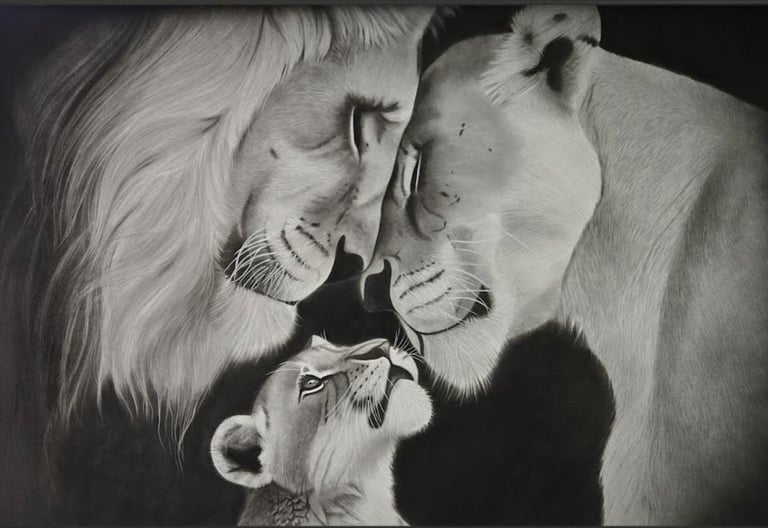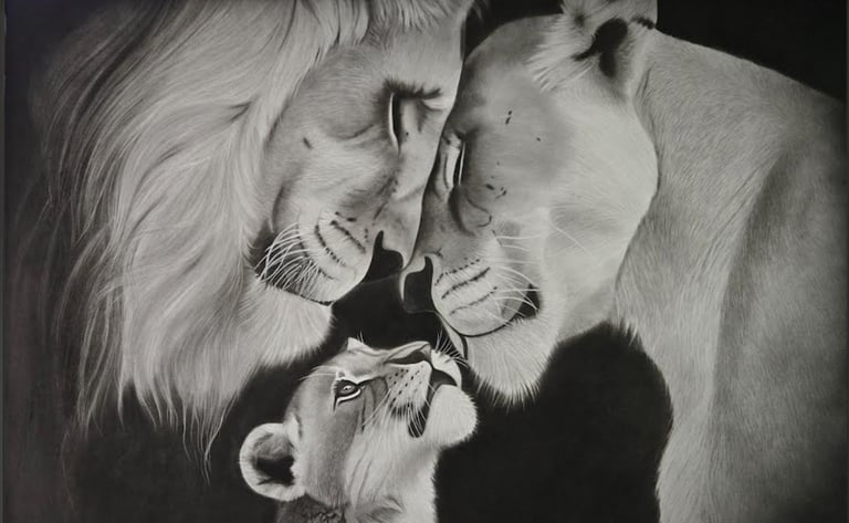 Grâce à une maîtrise exceptionnelle du fusain et d'autres techniques modernes, Élodie donne vie à chaque trait, chaque poil, chaque plume.