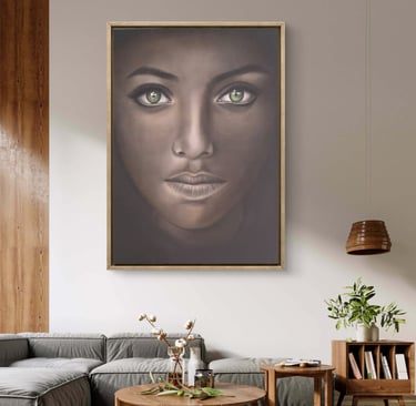 Dans ce portrait, la douceur des traits contraste avec la profondeur de l’expression. La femme représentée incarne une force intérieure discrète, une stabilité qui ne cherche pas à se montrer, mais qui se ressent.